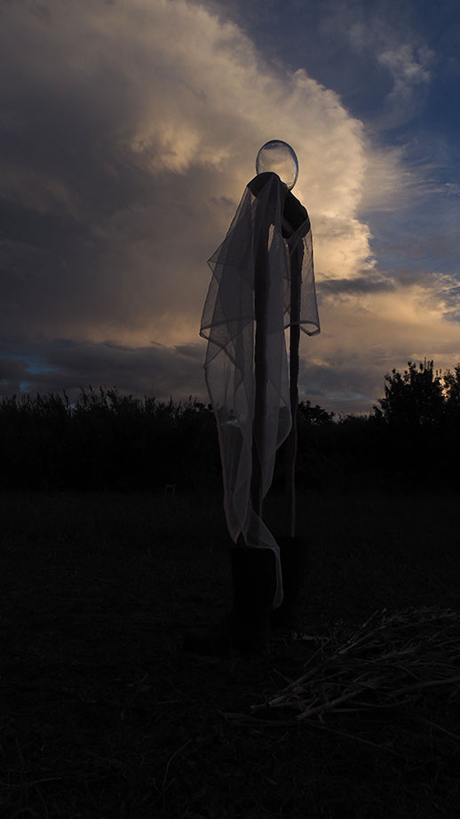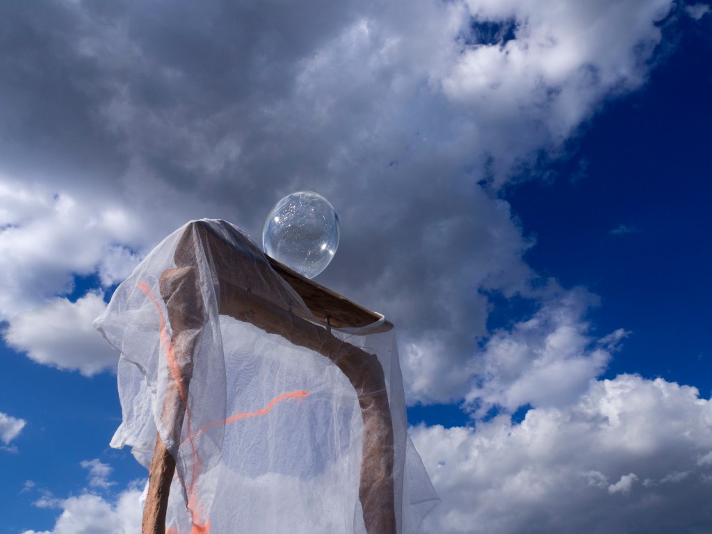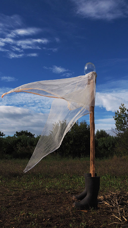 L’Absence, béton, céramique, bois flotté, tarlatane et verre soufflé ( Tipii Atelier, Toulouse), 2022.
